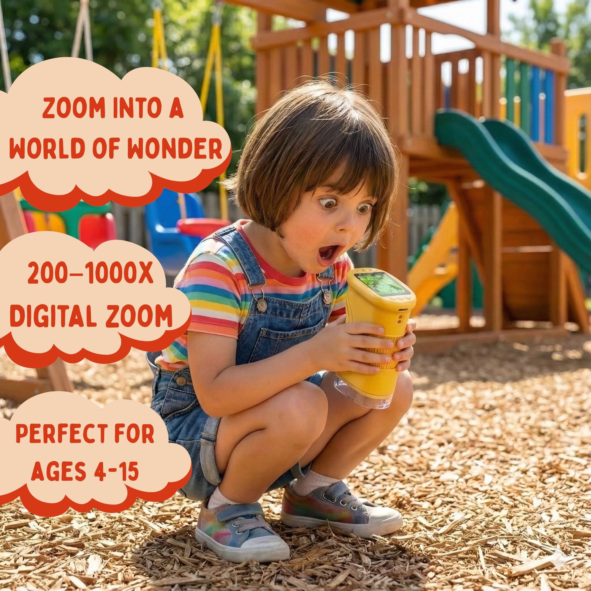 They slide the easy-to-use zoom wheel to magnify from 200× up to 1000×, revealing hidden details they’ve never seen before. Perfect for little hands — zero learning curve.