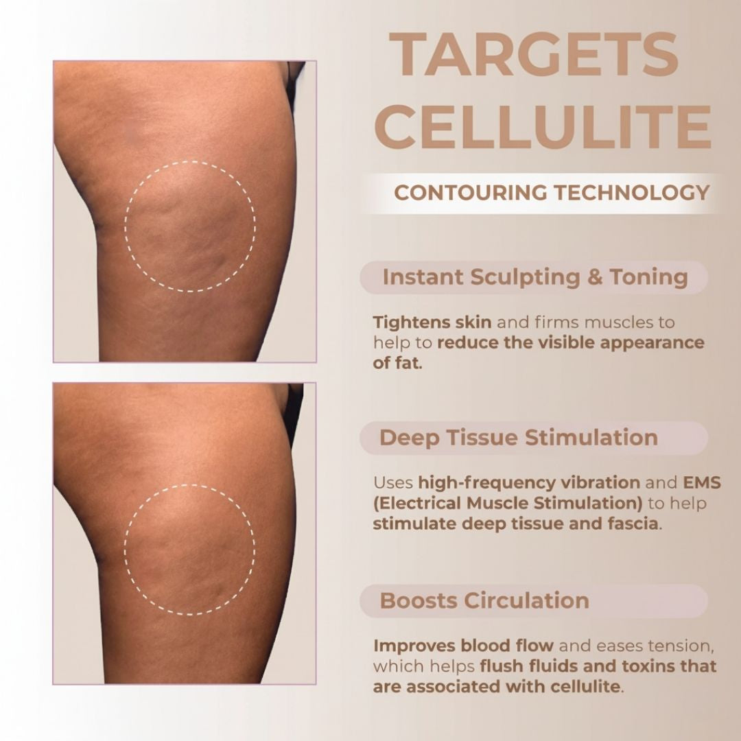Smooths cellulite & uneven texture — Loosens tight fascia and firms the appearance of thighs, waist, arms, and glutes.